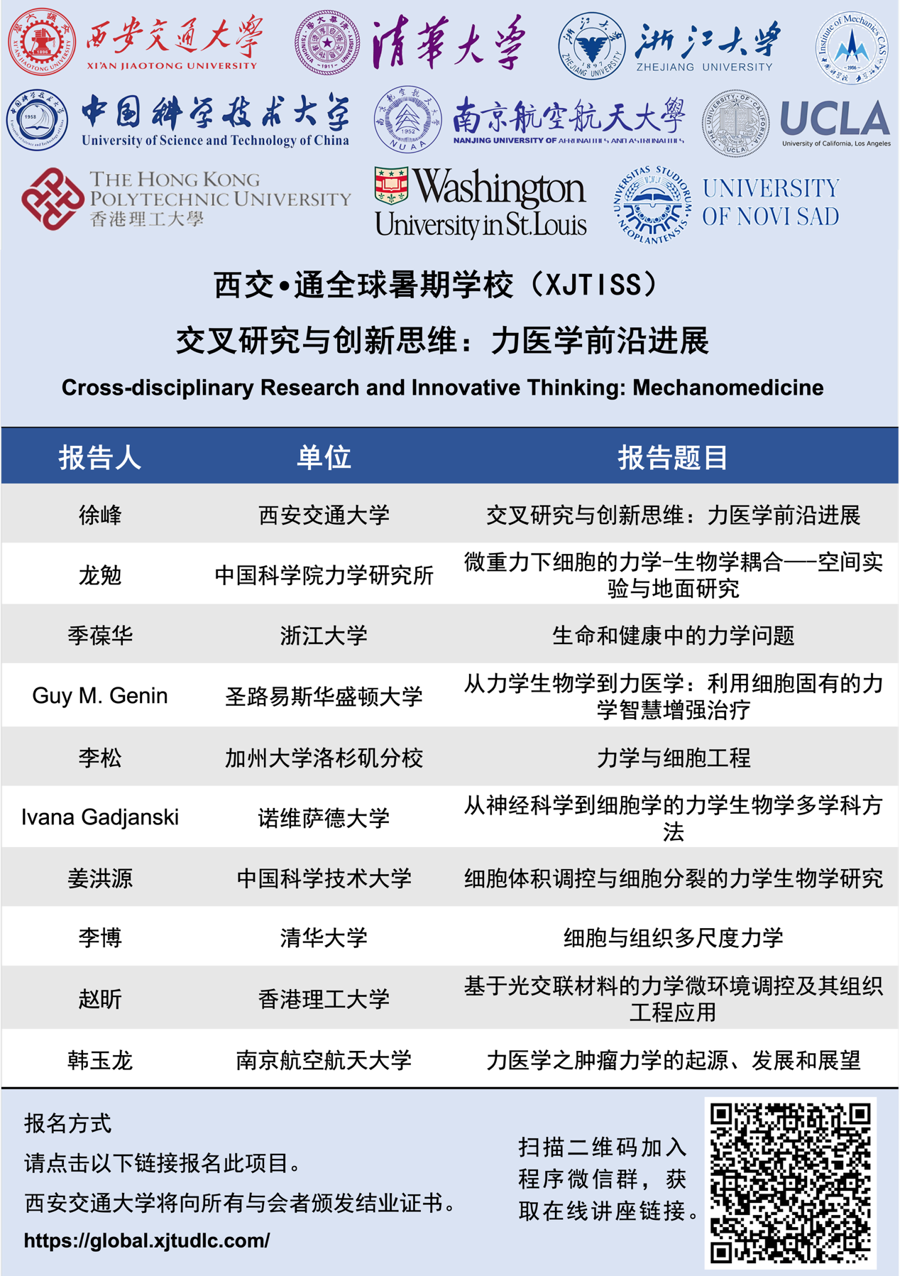 西交•通全球暑期学校(XJTISS)-交叉研究与创新思维:力医学前沿进展