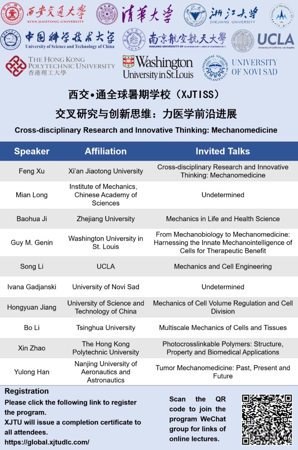 西交•通全球暑期学校(XJTISS)课程通知-交叉研究与创新思维:力医学前沿进展
