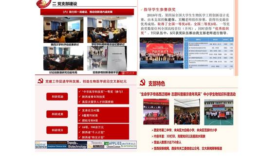 本年度党支部工作考核采取“双述双评的方式,党支部书记既要向学院分党委和支部全体党员汇报年度工作。各党支部从党支部建设“七个有力”、深入推进“两学一做”学习教育常态化制度化、党建与业务相结合等方面内容进行了工作汇报与展示。按照“一支部一特色”的培养方案,分析技术与仪器研究所党支部在支部工作中不但开展了中国共产党精神谱系系列微党课、读书分享及观看《习近平用典》等特色活动,更是对标学科评估结果和创新港研究所建设进行了深入研讨。生物医学工程研究所党支部注重将党建与中心工作紧密结合,本年度党员在教学、科研,特别是在科技竞赛中取得了优异的成绩。学院机关党支部重点讲述了机关党员“用心服务师生,争做优秀党员”的工作理念,通过“亮身份树形象”等活动激发党员的工作积极性和主动性。仿生工程与生物力学研究所师生联合党支部于2018年初成立,并入选学校“双带头人”支部书记工作室培育计划,支部在工作中围绕“党建工作促进学科发展,创造生物医学前沿交叉新纪元”,有效推进党建和业务工作的结合。生物医学工程系党支部汇报了通过组织凝聚党员群众,为一流学科建设和创新港研究所建设做好规划布局。生物系党支部以党支部组织生活和业务工作相结合“抓什么、怎么抓”为切入点,建立党员与群众联系机制,强调要增强党支部工作的实效。生物信息中心党支部展示了以学术研究为基础面向校内外策划开展的传统文化教育。