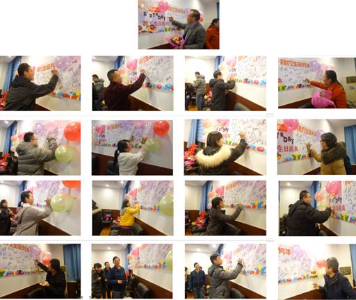 刘茹书记首先致辞,感谢各位老师多年来对学院各项工作的支持,并为大家送上了生日祝福。工会为过生日的老师们精心准备了鲜花和生日贺卡,大家一起分切生日蛋糕、齐唱生日歌、许下生日愿望、品尝香甜的生日蛋糕,在签名墙上亲笔签名留念,现场充满了温馨欢乐的气氛。刘健康院长表示集体生日会拉近了大家的距离,提高了教工对学院的认同感,激发了教工的工作热情,希望大家共同努力奋斗,使得我们学院更有生命力、战斗力。