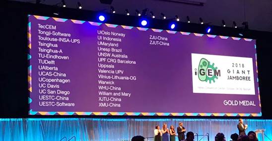 本次比赛共30支队伍获金奖,来自全球的343支参赛队伍参加角逐,其中中国大陆地区的参赛队伍总数已达75支。我校iGEM团队自2017年12月组队以来,得到了指导教师卢晓云、谭丹、孙书洪的悉心指导,生命学院、钱学森学院给予了大力支持,生命学院院长刘健康、副院长张建保在比赛倒计时阶段为团队提供了建设性指导。