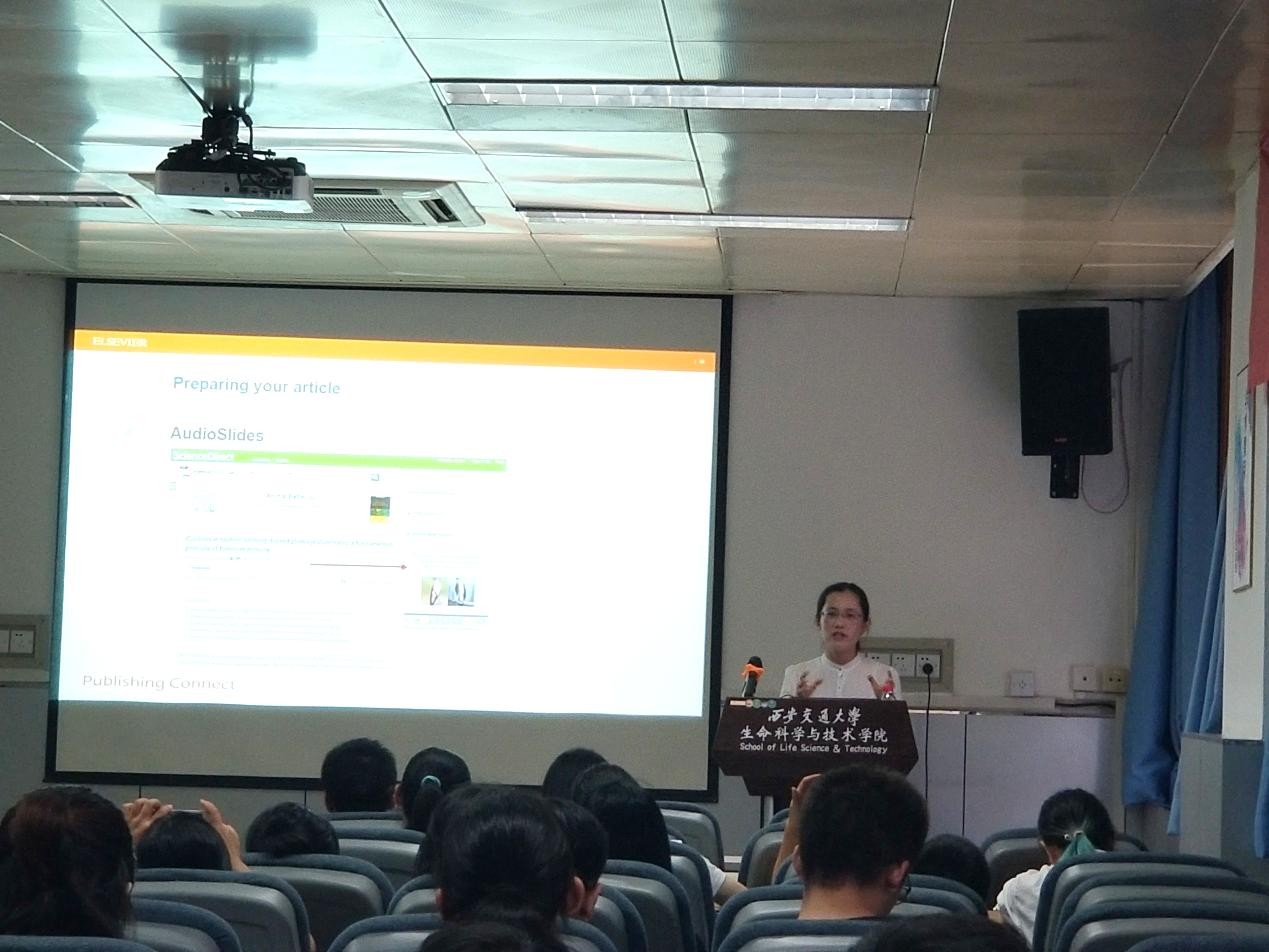 应西安交通大学生命学院院长刘健康教授邀请,6月27日下午,Elsevier出版社的解决方案顾问秦慧君博士在生命学院(教二楼北)308学术报告厅,为我院师生作了题为“SCI论文撰写、发表及检索漫谈”的学术报告。