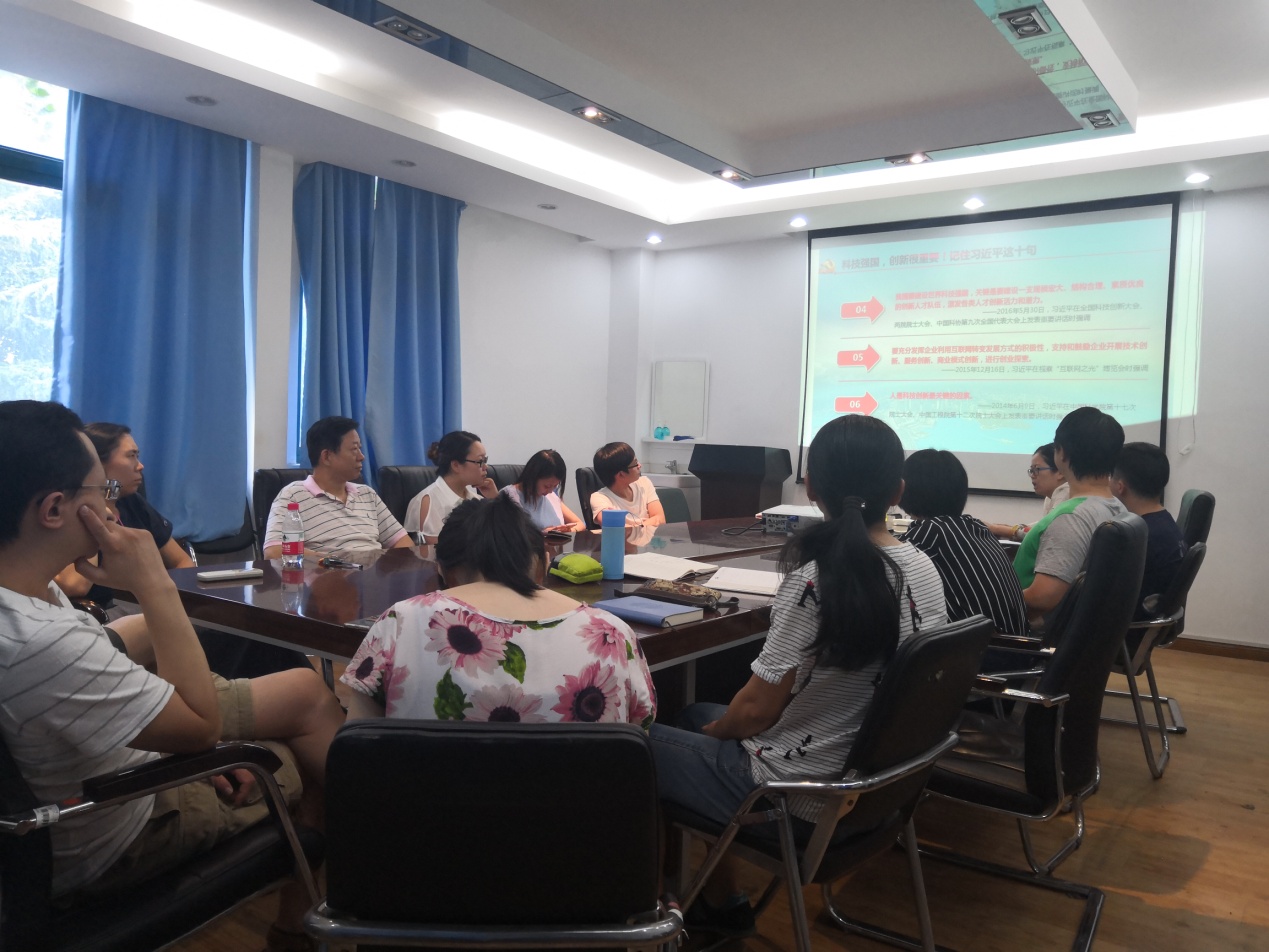 7月20日,生物工程系党支部在教二北416会议室进行“习近平教给我们的智慧”主题党日活动,畅谈建设世界科技强国。
