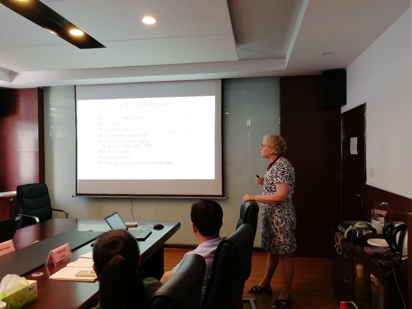 研讨会上,韩春雷教授介绍了PET在监测心脏功能方面的重要应用。庄晓青博士介绍了与芬兰国家PET中心的合作情况。四位专家详细耐心地解答了教师和同学们提出的问题。