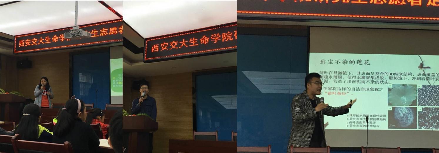 本次生物医学知识科普活动是基于上次活动的基础,为进一步扩大影响范围,推进生物知识科普进展,弘扬“西迁精神”,因此本次主题仍是围绕“3D打印技术”、“克隆技术”、“生活中的超疏水现象”三个方面展开。首先主持人李梦璇向同学们简要介绍了西安交通大学,阐述了生物医学工程学科概念,并列举了一些生物医学知识在实际生活中的应用。同学们认真聆听,全神贯注,眼睛里散发着渴求知识的光芒。