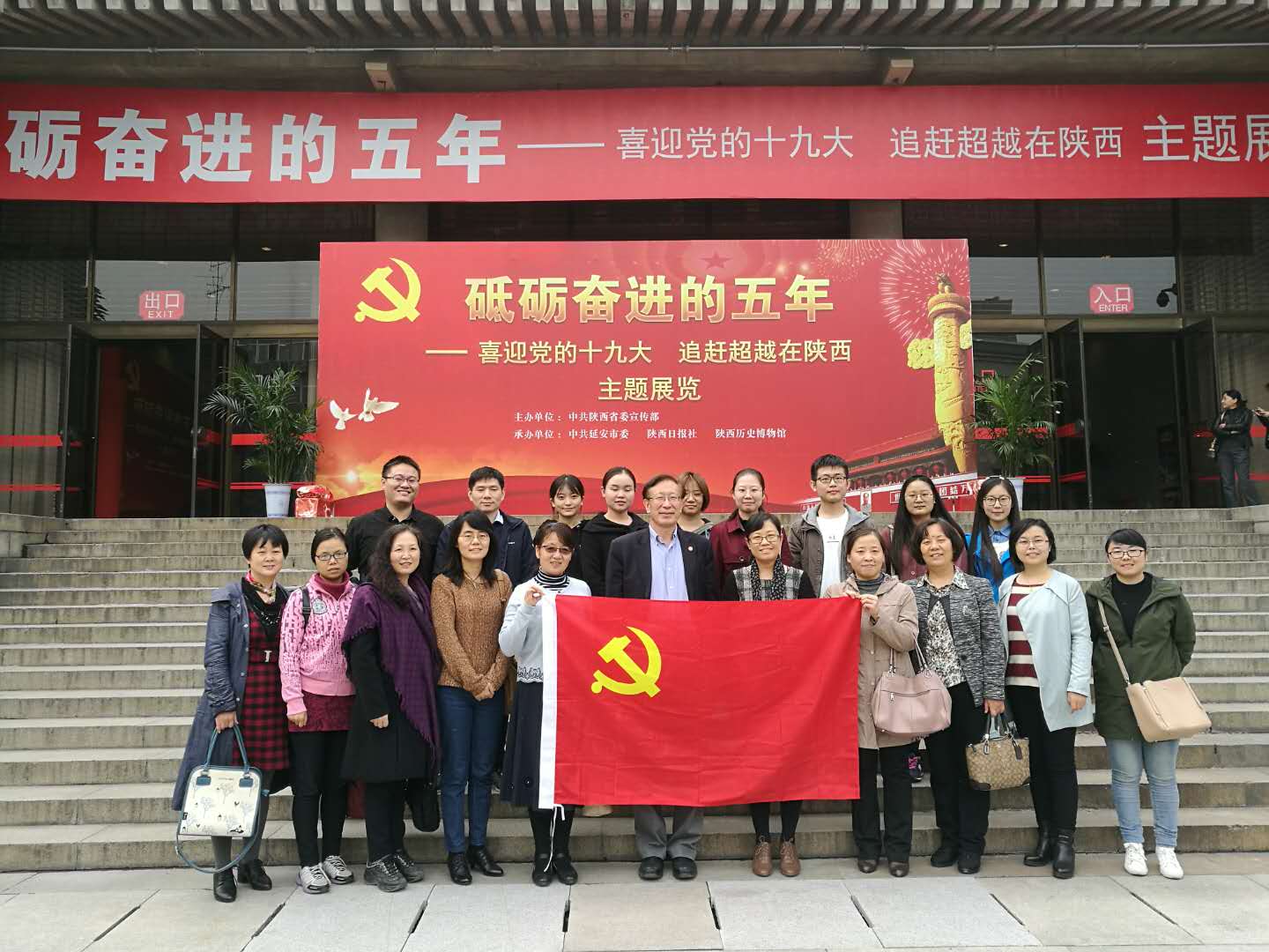 乘着党的十九大胜利开幕的东风, 怀着深入学习十九大精神的热情, 10月20日下午, 学院分党委书记刘茹和院长刘健康带领生命学院部分师生党员来到陕西省历史博物馆东展厅,参观“砥砺奋进的五年——喜迎党的十九大 追赶超越在陕西”大型主题展览。