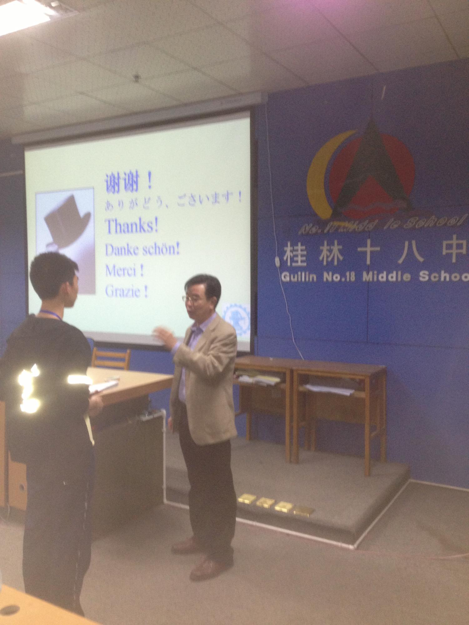 “学者教授进中学”科普讲座活动是我校近年来重点推进的一项招生宣传工作,旨在加强学校与优秀中学的联系,宣传我校的治学精神、育人理念和光辉历史,增进中学生对我校的了解,提升对交大的认同感。在桂林中学,演讲前刘院长一行与该中学的马劲校长和李志华副校长进行了交谈,加深了两校间的进一步相互了解。