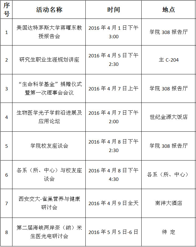 生命学院120周年校庆活动安排
