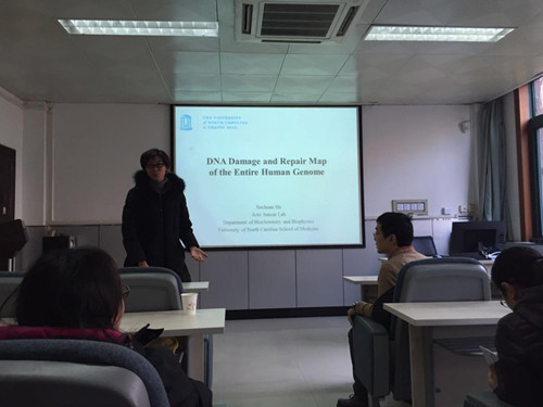 应我院生物系系主任卢晓云教授邀请,胡晋川博士12月17日下午14:30在生命学院308报告厅做了关于人类全基因组DNA损伤与修复图谱的学术报告。胡博士已经在DNA修复机制方面做了许多深入研究,其博士后合作导师Aziz Sancar教授获得了2015年的诺贝尔化学奖。胡博士目前已经在Genes & Development、 J Biol Chem. 以及Nucleic Acids Res.等领域内影响力广泛的学术期刊上发表多篇论文,并多次在国际学术会议上做展板交流。2015年获得北卡大学博士后杰出研究奖。