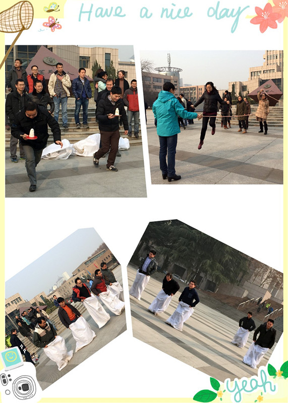 2015年的最后一天下午,生命学院全体教职工聚集在四大发明广场,举行了别开生面的趣味运动会和迷你越野赛,喜迎新年的到来。趣味项目有袋鼠跳、托球接力、跳绳等,往日不拘言笑的老师,今日都走出实验室一展风采,请欣赏他们优美的瞬间!