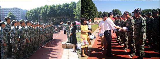 慰问活动进入尾声,前来慰问的领导及老师们为军训新生们一一发放慰问品,给予在训学员们关怀与慰问。相信他们一定会圆满完成各项军训任务,以最出色的表现和优异的成绩向学校汇报。
