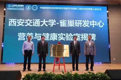 会上还依次举行了西安交通大学-雀巢研究中心营养与健康实验室、西安交通大学-三八妇乐集团生物医药联合研究院、西安交通大学-小天使集团细胞营养与生命健康研究院揭牌仪式。