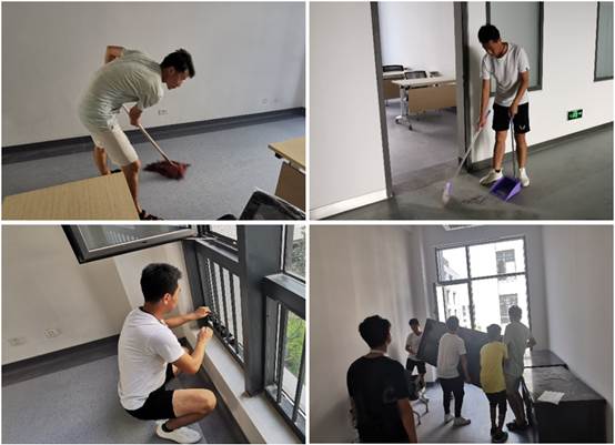 党员同学们分工明确,各司其职,相互配合。摆放擦拭家具、地面清洁、门窗缝隙清理,大家并没有因为布置的是临时办公室而放松对工作的要求。“作为一名党员,为学院的入驻工作出力是我的责任”硕9111班康家豪同学说,“志愿服务,党员先行。我是第一批入驻创新港的研究生,感谢交大为我们提供创新港这样好的平台,我也希望用自己的行动,把创新港建设得更加美好”。