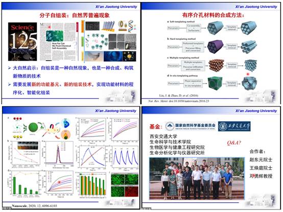 报告上,面向生命科学和生物医学分析检测的国家重大需求,聚焦国际研究前沿,魏晶教授介绍了生命分析化学与仪器研究所的基本信息,并讲解了纳米介孔材料的功能化修饰和纳米介孔金属氧化物的组成调控及生物传感性能的研究。通过结合学科前沿期刊文章的思路与方法,魏教授详细介绍了纳米介孔材料的合成过程和功能性能,引发与会师生的热烈讨论。此外,魏教授以纳米介孔材料与生物传感为载体,强调了建立生命过程分析与检测的新原理、新方法与新技术、研发具有自主知识产权的分析检测器件与仪器的重要性。