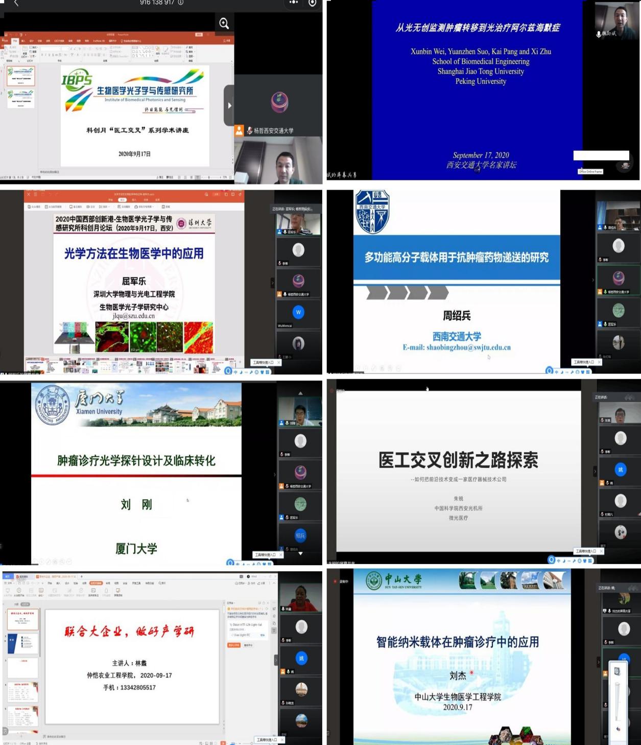 9月17日,北京大学魏勋斌教授、深圳大学屈军乐教授、西南交通大学周绍兵教授、厦门大学刘刚教授、中科微光创始人朱锐董事、仲恺农业工程学院林蠡教授、中山大学刘杰教授通过线上形式参加会议,分别围绕目前光学成像及光学治疗中的优势、超分辨成像中的瓶颈及解决方案、纳米医学尤其是纳米载药体系创新和转化策略、从技术创新到企业创建以及如何与企业进行合作等问题提出建设性建议。