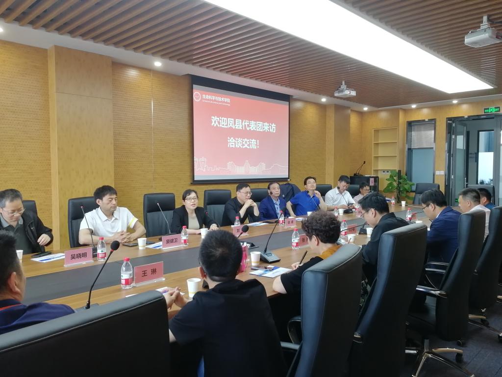 56日下午,宝鸡市凤县县委书记张扬一行来访生命学院,生命学院、药学院教师代表、二附院医生代表共20人参加交流座谈。我院分党委书记刘茹参会。会议由副院长徐峰主持。