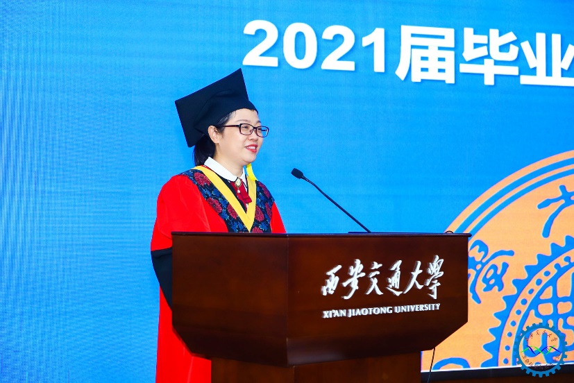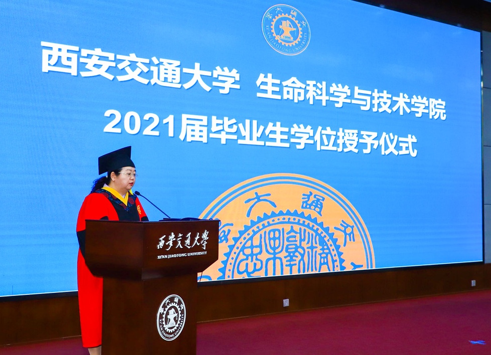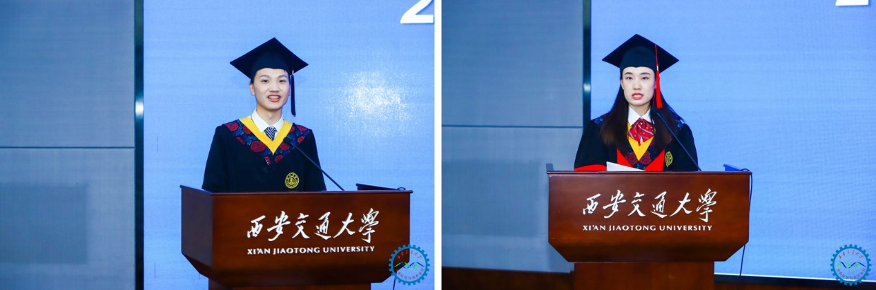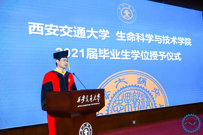 本科毕业生代表杨守志、博士毕业生代表王雅在发言中对母校和学院的培育与滋养表示感谢,回顾了求学期间的点滴进步及成长,“四年前,我来到交大的怀抱,四年后的今天,交大永远住进了我的心里”,“立大志,成大才,讲奉献,明大德,我们必将以身为刃,直指行业瓶颈,攻坚克难,脚踏实地,推动健康事业发展”,“我们将秉持学院的育人使命,为实现健康中国贡献我们生命人的力量,为人类健康贡献中国智慧,承担国家、民族和社会赋予的责任,为母校争光添彩”。字字铿锵,句句有力,充分展示了生命学子的责任与担当、胸怀与格局。