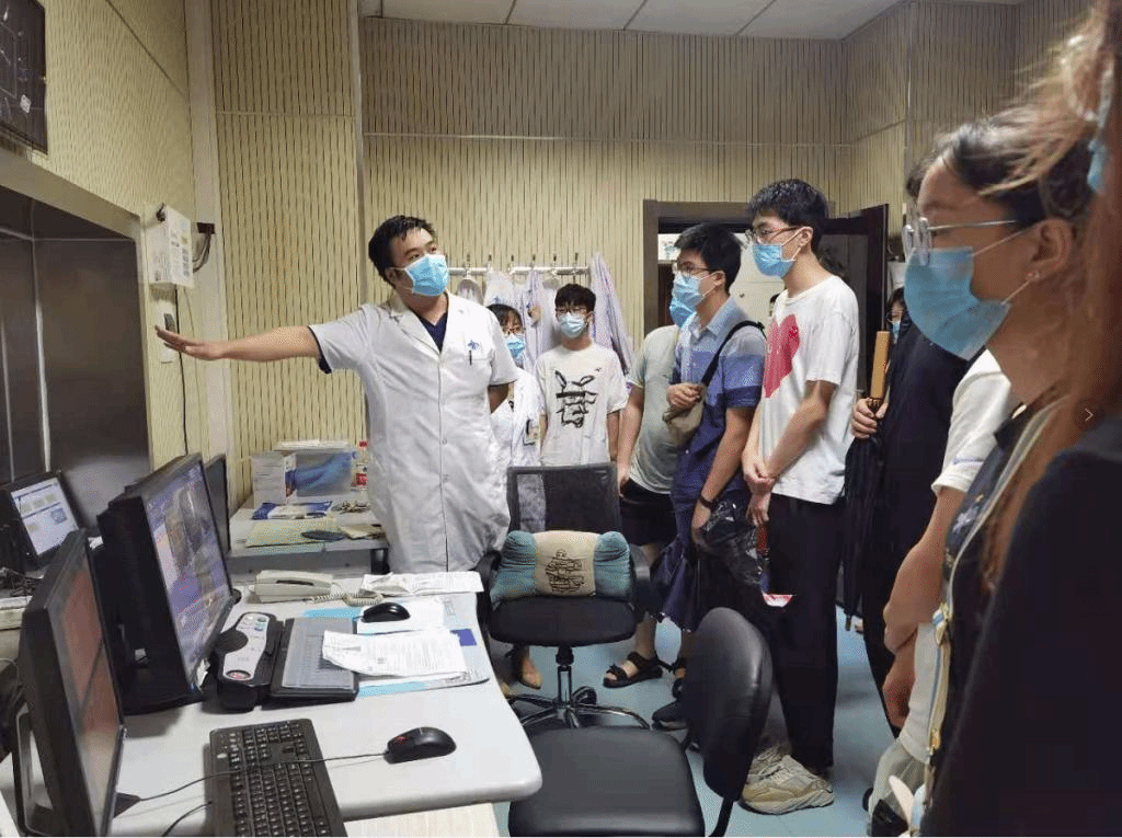 生物医学工程专业与医学影像临床工作密切相关,7月18日,2019级本科生集体前往一附院影像科实地参观见习。影像科主任杨健从人员配备、设备分布、技术应用等各方面进行了介绍,重点阐述了人工智能在医学影像学中的应用,特别提到了国家“十四五”规划在人民健康事业上的布局以及我校“卡脖子”、“临门一脚”等受制于人的重点问题,鼓励青年学子立大志,明大德,在医疗器械行业做出青年人的贡献。