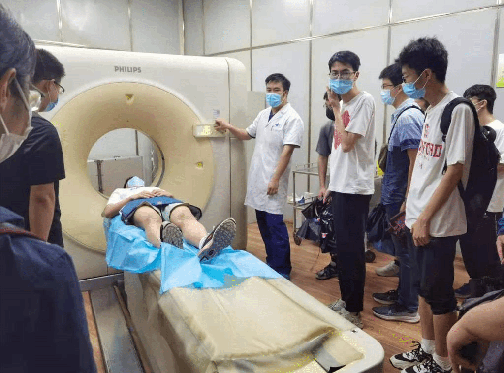 随后,同学们分为3组参观了科室,重点对3.0T 750W静音磁共振、256排后超高端CT、飞利浦DR仪等进行了学习,了解了DR、CT以及磁共振等几类仪器的成像原理、检查流程、注意事项、常规检查方法、新技术应用等,让同学们在临床实践中学习相关知识、建立相关概念,激发青年学生对专业和行业的认同感。