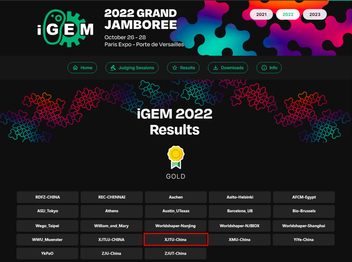 合成生物学领域最高级别的国际学术竞赛——国际遗传工程机器大赛(International Genetically Engineered Machine Competition,简称iGEM)线上比赛近日落下帷幕,西安交通大学本科生参赛团队XJTU-China再获金奖,这也是西安交通大学自2018年以来连续五年获得的第四块金牌。