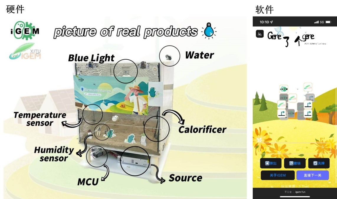 团队成员多次实地走访了西安及周边的农田和农民,充分调研了土壤除草剂使用和土质改善的现状,并积极宣传项目;同时线上线下与相关专家和农业部门积极交流,不断完善和推动项目的进行。另外,通过建模仿真以及制备小型温室箱,出色地完成了工程菌效果的测试。项目在wiki网页展示、干/湿实验、硬件装置、人文实践等方面都具有诸多亮点,尤其是专业且流畅的英文汇报答辩,得到评委们的一致好评。